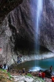 三折瀑是同一水流历经三处悬崖,成为上中下三个飞瀑。其中,以中折瀑最为动人。中折瀑周围的悬崖,有如一个半圆形的洞穴,水从洞顶倾泻而下,非常优美。