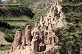 »ÆÍÁ¾ßÓÐÖ±Á¢¶ø²»×¹µÄÌØÕ÷£¬Òò´Ë¶à¼ûÆäÖ±Á¢µÄÍÁ¿²£¬Äê¾Ã²»µ¹¡£µ«»ÆÍÁ¼«Ò×ÊÜË®³åË¢£¬¼ÓÖ®»ÆÍÁµØÇø×ÔȻֲ±»½Ï²î£¬³¤ÆÚÊÜÓêË®»òɽºéµÄ³åË¢£¬×ÔÈ»ÐγÉÁ˸÷ʽ¸÷ÑùµÄ»ÆÍÁ¹µÛÖ×ݺáµÄÒ»ÖÖÆæÒìµÄµØÃ²£¬Ò²¾Í³ÉÁËÒ»µÀ×ÔÈ»¾°¹Û¡£ÔÚÓÐÑÒ²ãµÄµØ·½£¬ÑÒ²ãÏÂÃæµÄÍÁ¾Í°þÊ´µÃ½ÏÂý£¬½¥½¥ÐγÉÁ˸÷ÖÖµÄÖù×´£¬Ã¿¸öÖù×ÓµÄÍ·É϶¼¶¥×ÅÒ»¿éʯ°å£¬ÏñÊÇ´ø×Å¡°²Ýñ¡±£¬ºÜÓÐÒâ˼£¬ÕâÑùµÄÖù×Ó¶àÁ˾ÍÐγÉÁË¡°ÁÖ¡±£¬ÍÁÁÖµÄÃû×Ö¾ÍÊÇÕâÑùÀ´µÄ¡£