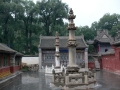 万佛阁,山门向南,二门向西,万佛阁位居寺内东隅,面宽三间,二层三滴水,歇山式屋项,上下两层塑佛像万尊,故名。阁身前檐两层皆施廊柱,设勾栏赁依,外观壮丽雅致。阁上悬有明代大铜钟一口,重约3500公斤。寺内西南隅,有藏式佛塔两座,高约4米,青石雕成,形制秀美,为寺中小品。