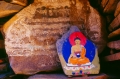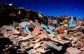 翻过一道梁子后,眼前突然展现出一片广袤的平地,远远的就看见松格玛尼石经城堆砌在那里。总算到啦!松格玛尼石经城其实也是个“另类“的玛尼堆,或者说是个巨型的玛尼堆。它远看就像个古代的军事要塞,长宽约50多米,高度俺估计超过10米以上。由无数的石板砌成。同样,每一块石板都布满经文或佛教石刻画。据说,因为草场泥地松软,还有一半多陷到地下去了,和巴格玛尼墙一样,它依然被佛教徒们继续在加高,同时也在继续下沉。传说松格玛尼石经城是藏族英雄格萨尔王为了纪念手下战死的弟兄们而建立的一个小玛尼堆,很快就成了一个圣地。后人们纷纷来此朝拜,也继续添砖加瓦,最后形成了巨大的玛尼城。有考证说从最下面发掘出的石板上,刻的不是藏文经书而是梵文的。这有力的证明了松格玛尼石经城诞生于佛教进入西藏之初。从石经城一边有个小门可以进入石经城里面,入口很窄,仅能容下一身。里面如同迷宫一般,狭窄的通道弯来拐去,让人摸不着头脑。我就不幸在里面暂时迷路约一刻钟,最后狼狈的爬过一个石堆才找到出口。在里面呆着,万籁寂静,太阳火辣辣的立在头顶。偶有几只秃鹫飞过,哇哇的叫2声,令人感觉毛骨悚然。我背着NF1,仔细看着石刻,很多石刻文字工整,刻刀刚劲有力决不拖泥带水。尤其一些石刻画,记述着一些佛教传统故事,线条简洁,彩色画是用矿物盐绘制的,历经岁月而不褪变。我居然在一片石板上看见了西游记故事...就像连环画一样。时间比较紧,还得赶路,没来得及在石经城里再顿悟出什么。我们匆匆撤退了。当晚10点过到达玛尼干戈,至此,石渠之行也算结束了。